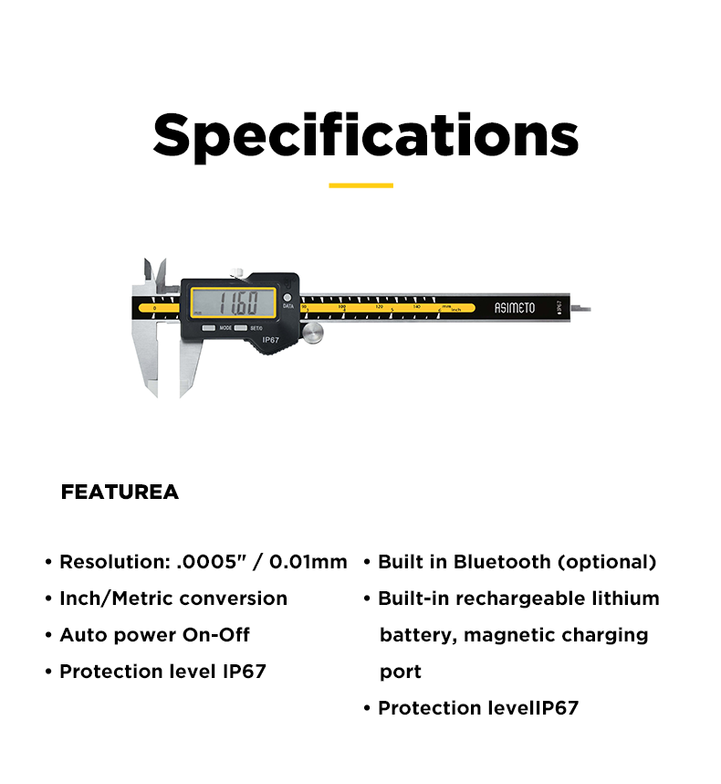 SélectionnerCouleur: Pied à coulisse numérique IP67 Série 301 Impérial ou Métrique