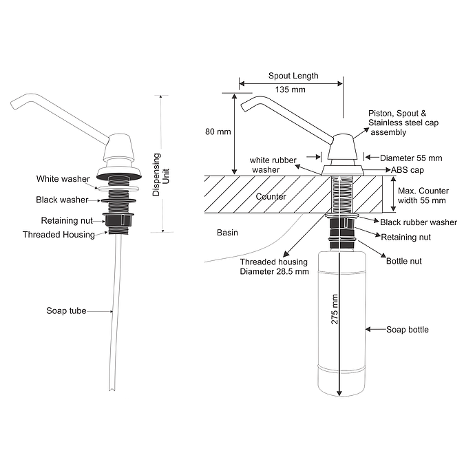 Acier inoxydable n ° 304, plastique ABS, nylon résistant aux chocs, silicone, nitrileMatériel