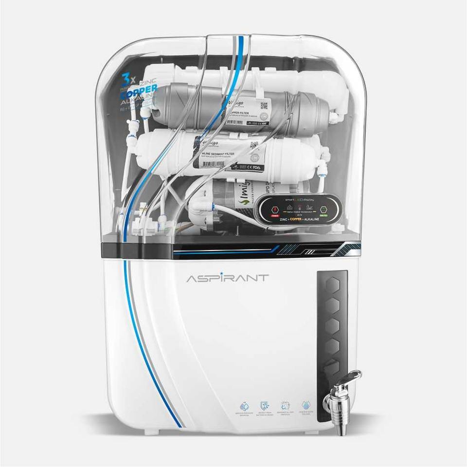 Système de purification d'eau par osmose inverse électrique haut de gamme Aspirant Noir Blanc Transparent, portable, en plastique, avec filtre à sédiments et charbon actif