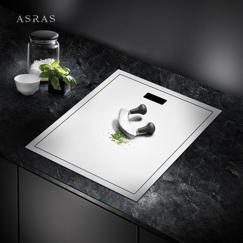 Évier de cuisine Asras en acier inoxydable SUS304 fait à la main, évier simple à cuve unique, petit évier encastré avec robinet télescopique 3847Y-2