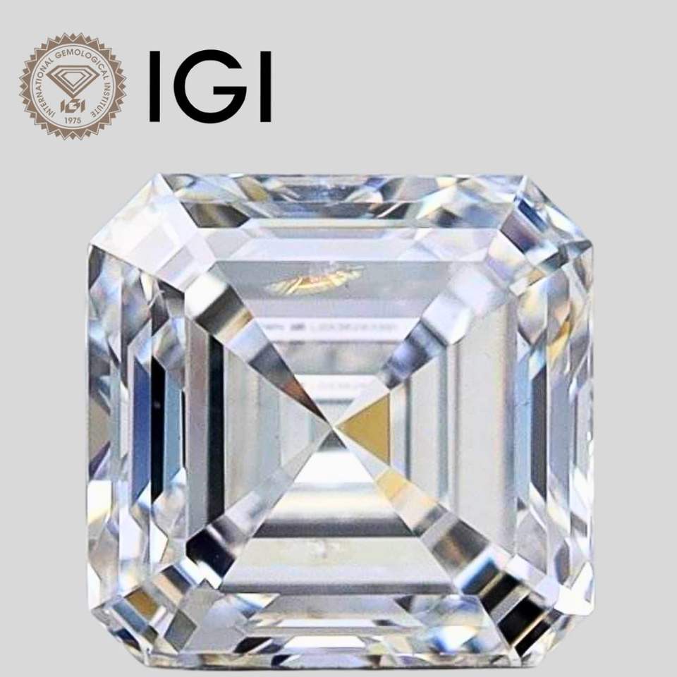 Diamant de laboratoire Asscher 4 carats D VVS1, taille Asscher, certifié IGI