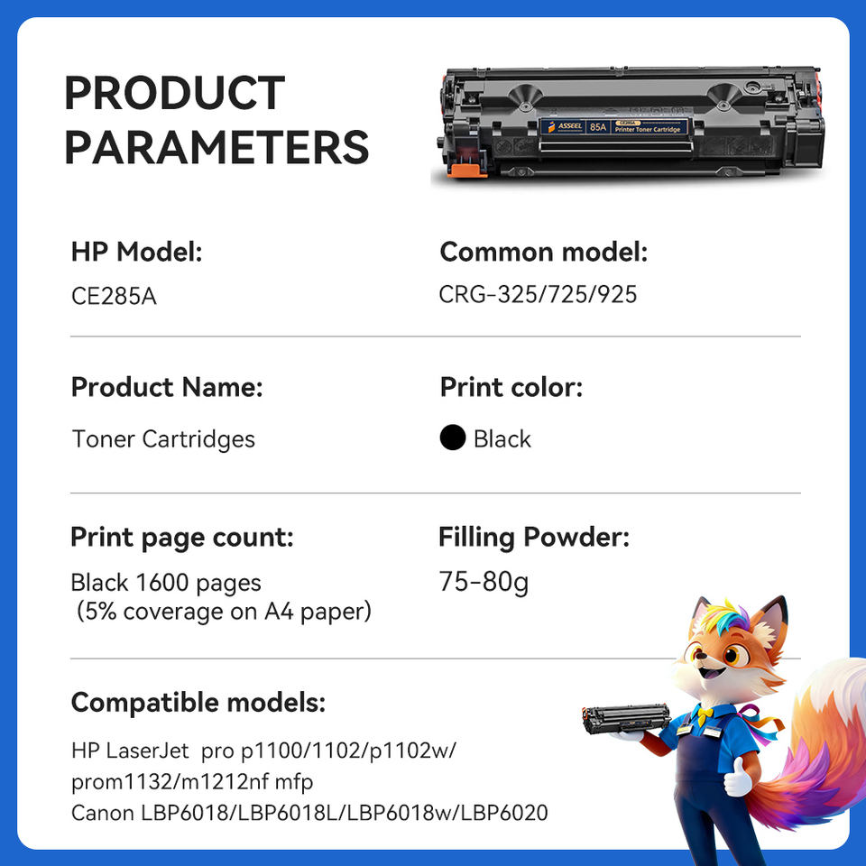 Cartouche de toner compatible Asseel CRG 325 pour imprimante HP LaserJet P1102 M1212 Series, compatible avec la cartouche de toner vide HP 85A 85X, pièces détachées