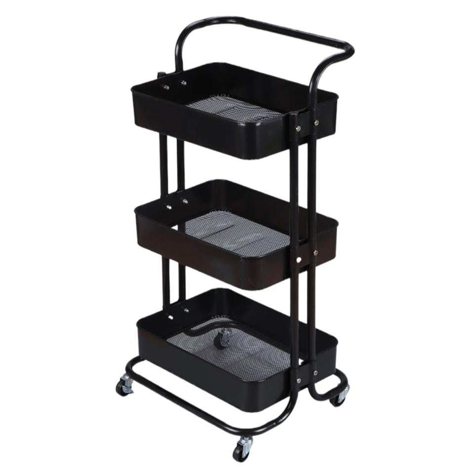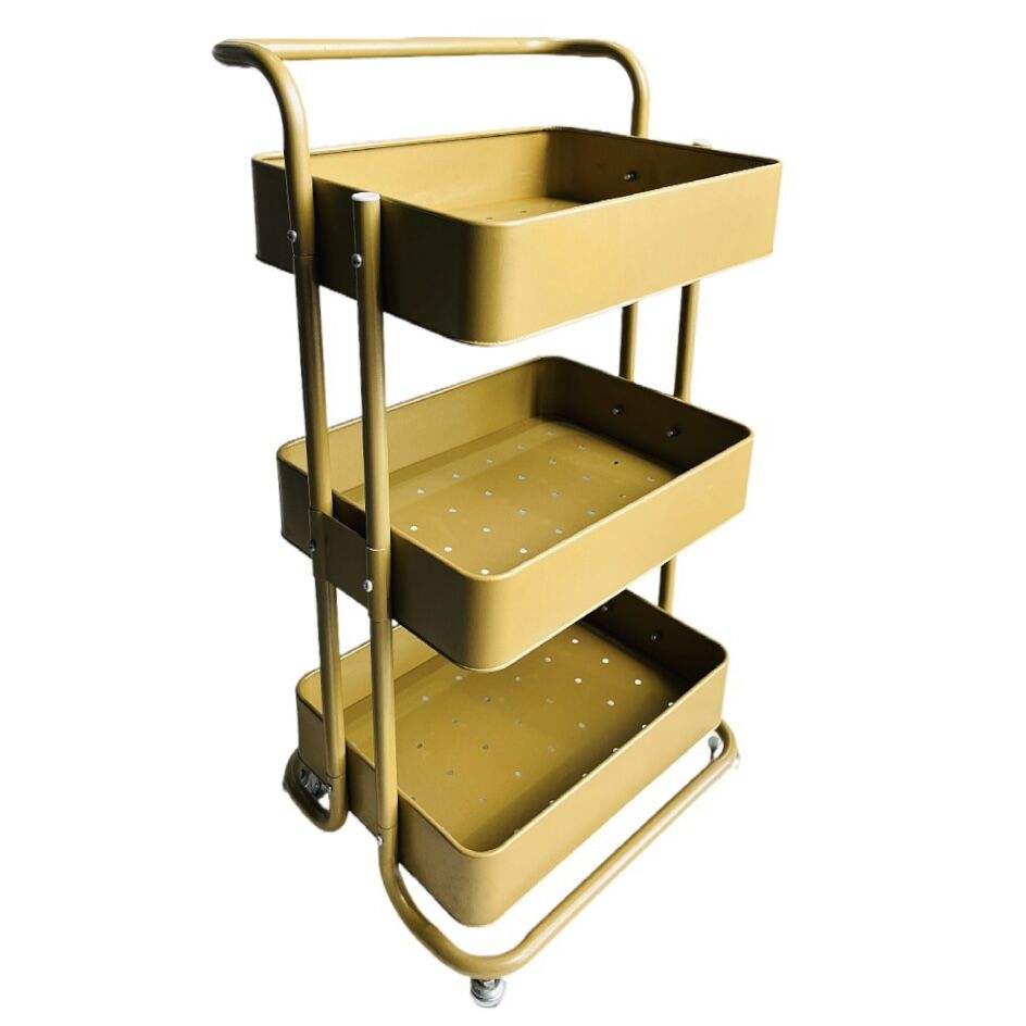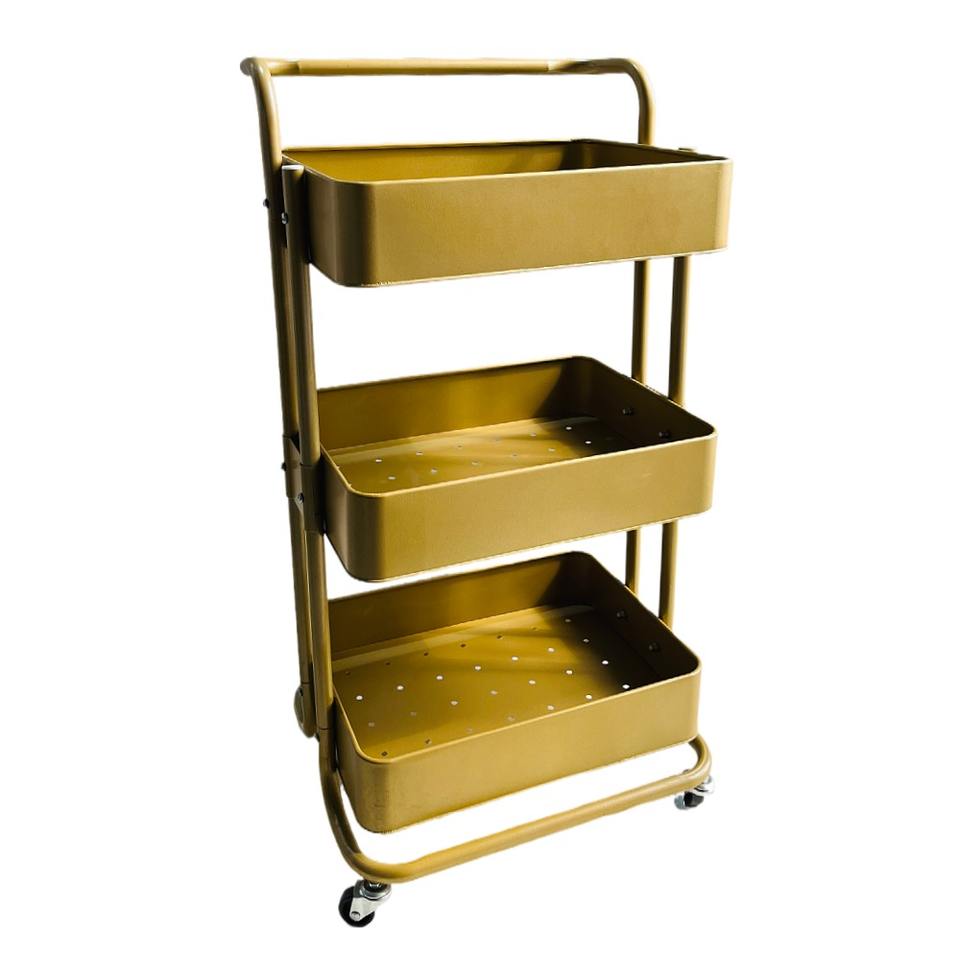 Chariot de rangement en métal à 3 niveaux, chariot de rangement de cuisine roulant sur roue chariot utilitaire multifonctionnel pour le linge de salle de bain