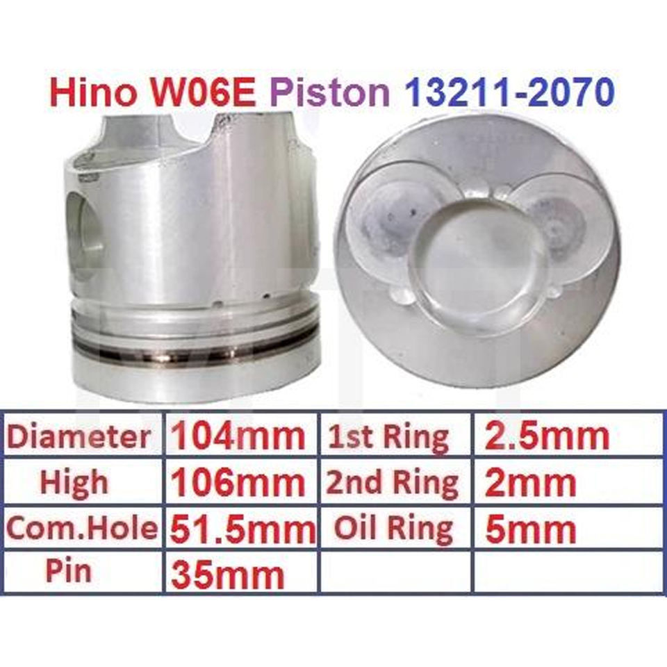 Kit d'assemblage pour piston Hino W06E 104 mm 6400 cm³ compatible avec Hino Dutro Ranger OEM 13216-1510 13211-2070