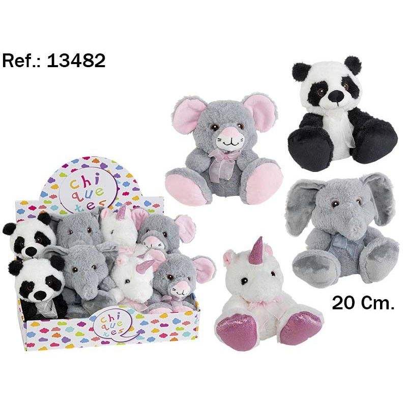 Animaux assortis Jouets en peluche à gros pieds 20 cm Polyester super doux taille 120 cm avec remplissage en coton PP hauteur 10-12 cm en boîte