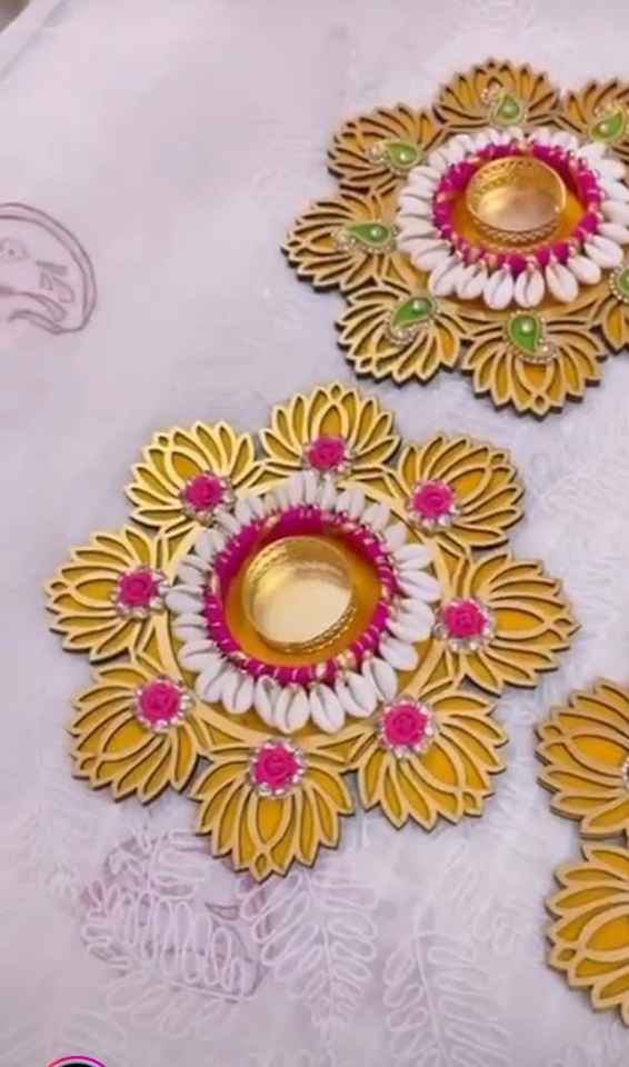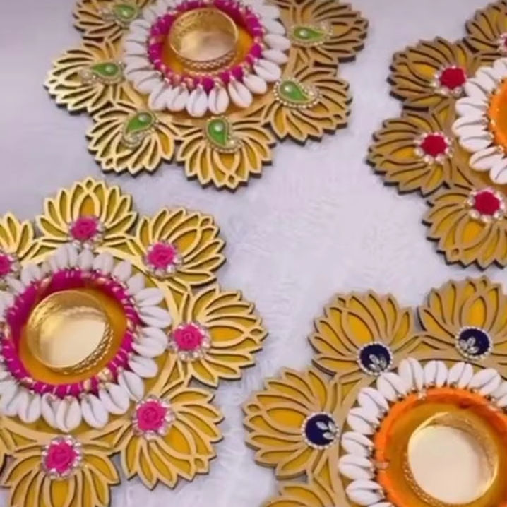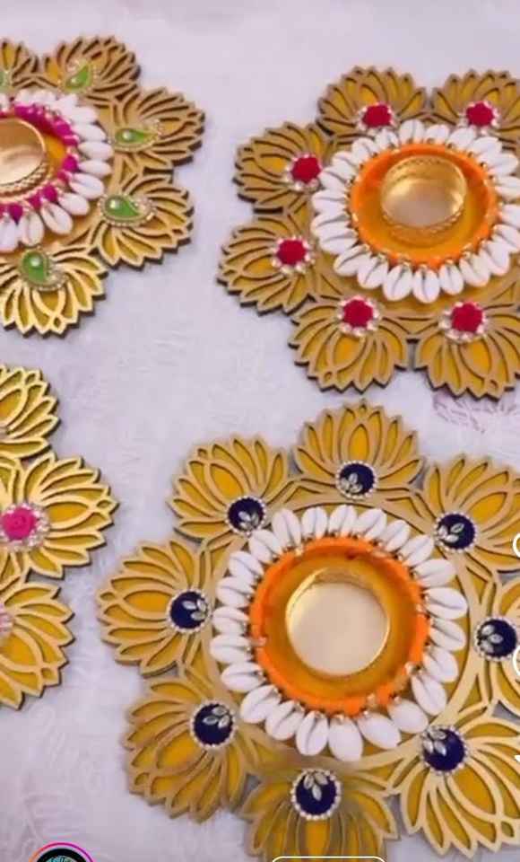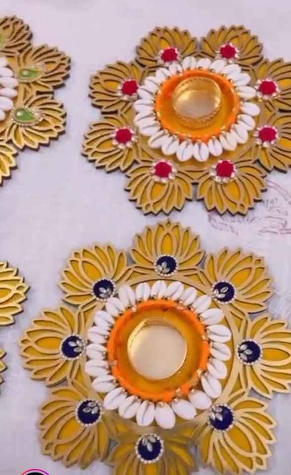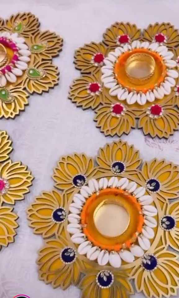 Ensemble de rangolis en coquillages de vache assortis avec un porte-bougie classique durable pour les événements de mariage, décoration de centre de table