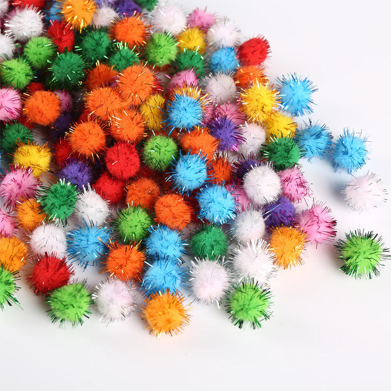 Assortiment de pompons acryliques multicolores à paillettes jouets en pâte créative pour artisanat fournitures de passe-temps boules de pompon floues thème de carton