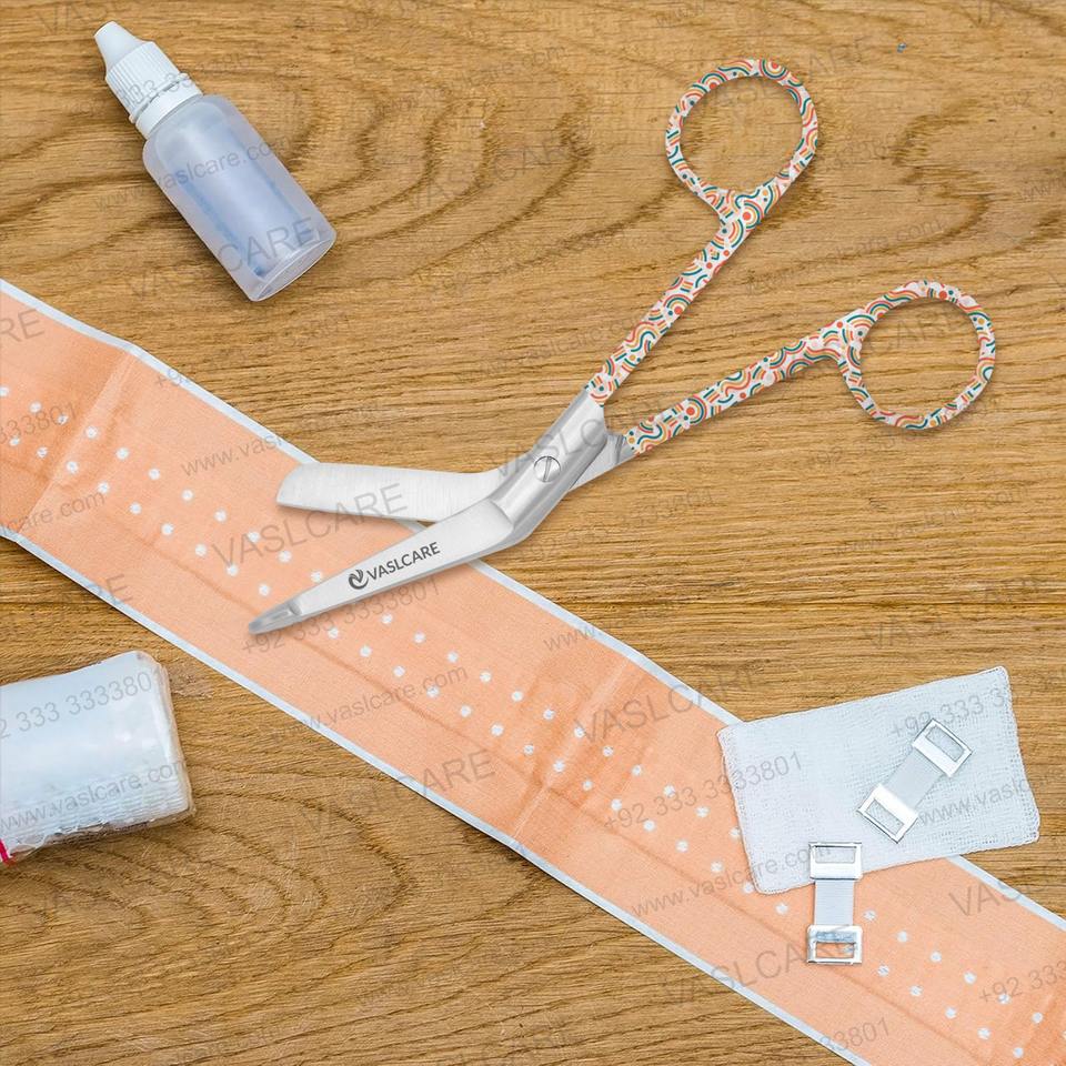 Ciseaux Vaslcare Dressing Lister Manche à motifs assortis avec pointe émoussée Lame tranchante pour infirmières Ciseaux à bandage en acier inoxydable