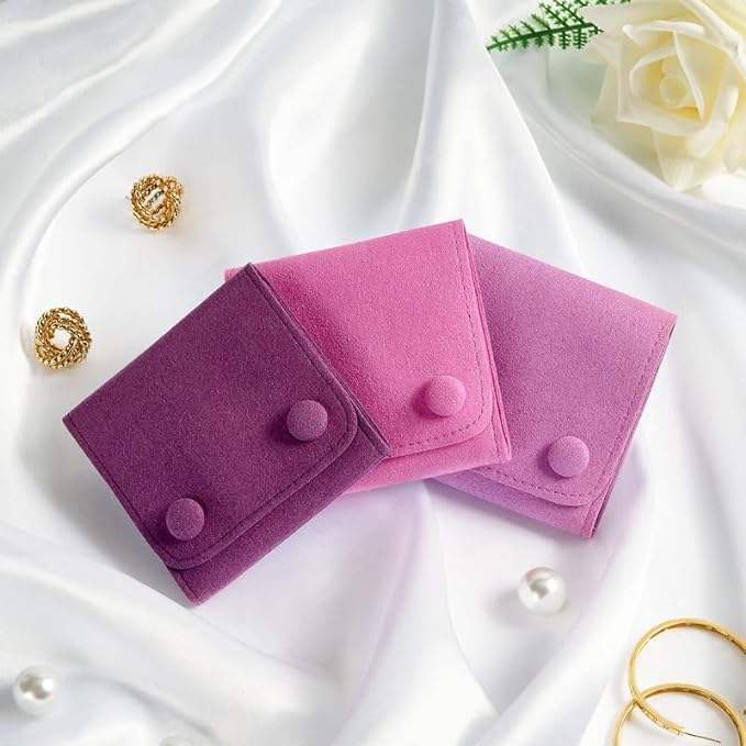 Pochette à bijoux en daim à pression de couleur violette assortie pour bijoux sacs-cadeaux de petite entreprise Logo personnalisé imprimé