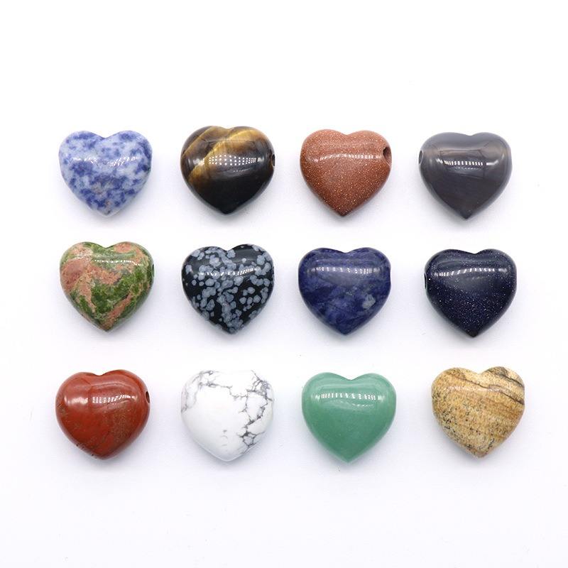 Assortiment de perles en forme de cœur en pierre à grand trou breloque européenne en forme de cœur pour la fabrication de bijoux 25mm trou horizontal de 3mm