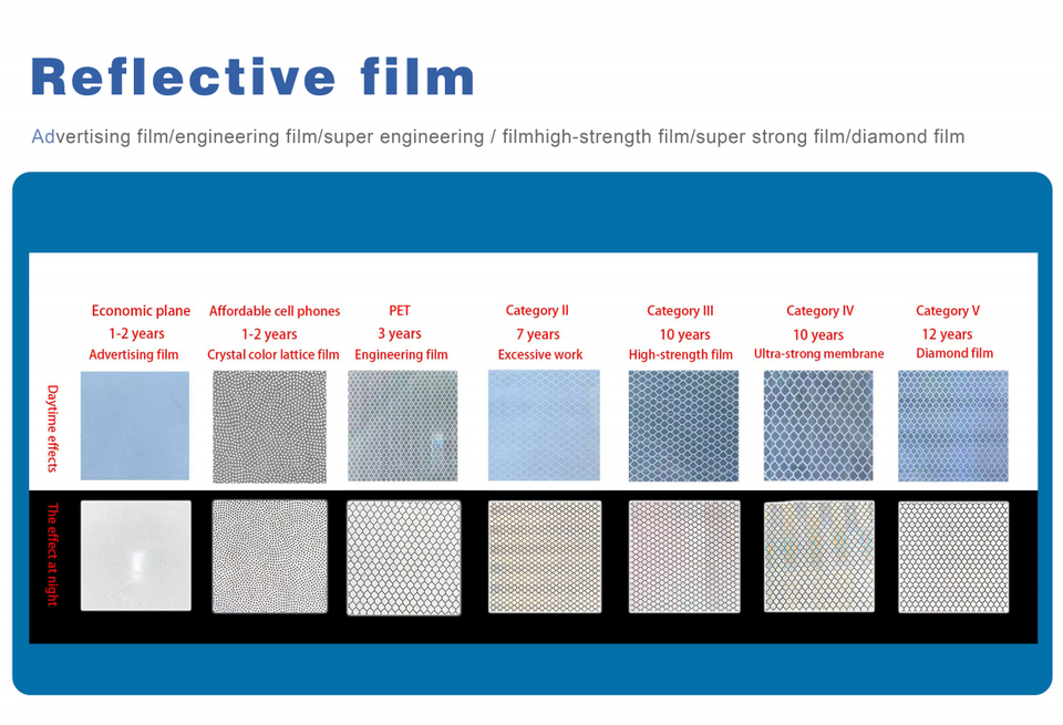 Traitement de surface:Film réfléchissant prismatique haute intensité + Impression protégée contre les UV