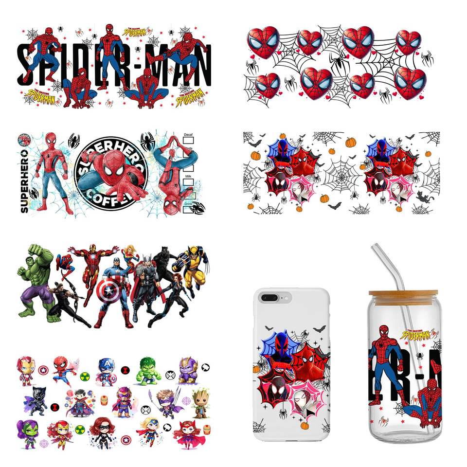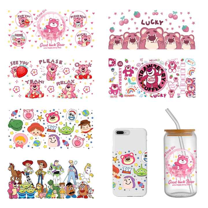 Transferts UV assortis pour gobelets double face de 16 oz avec motif de dessin animé et matériau en caoutchouc