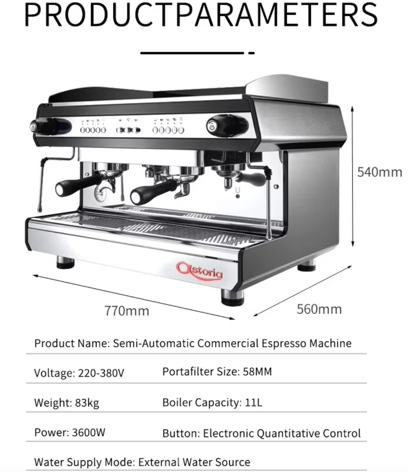 Machine à expresso semi-automatique Astoria TANYA E61, 2 groupes, chaudière en cuivre de 11 L, 3600 W, pour café