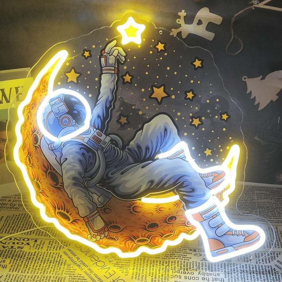 Lampe murale LED néon Astronaut Moon, alimentée par USB, étanche IPX3, multicolores, à intensité variable, pour bar, salle de jeux, magasin, mariage, maison