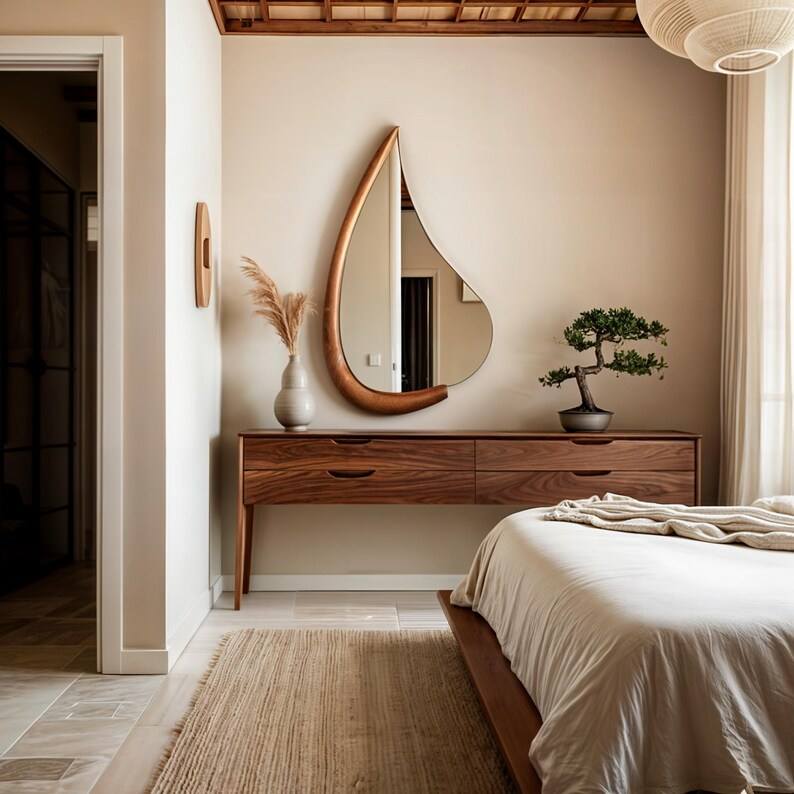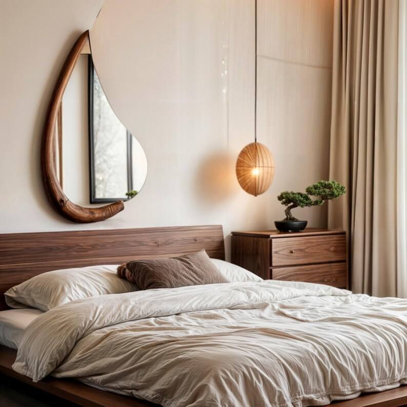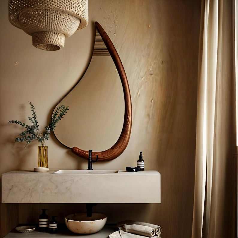 Asymmetrical Wooden Art Deco Water Drop Wall Mirror Handmade Eco-Friendly Lightweight Decor
