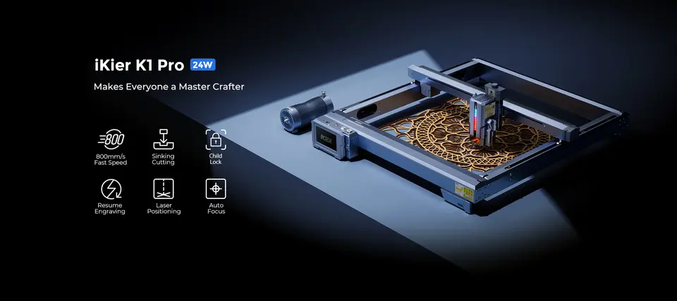 Machine de gravure laser Atomstack IKier K1 Pro 24W, découpeuse professionnelle, assistance pneumatique automatique, vitesse de gravure jusqu'à 800 mm/s