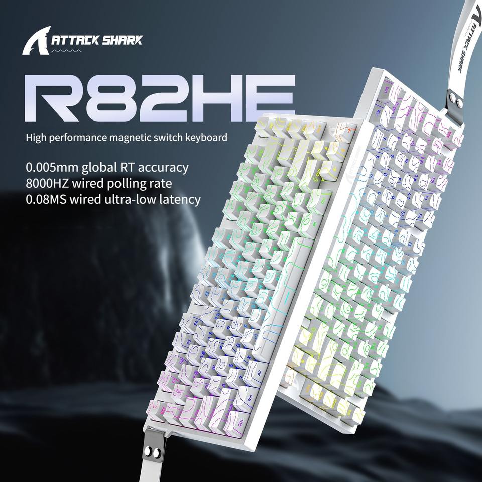 Clavier de jeu Attack Shark R82HE à interrupteur magnétique filaire 0,005 mmRT 8 kHz 0,08 ms faible latence pour CSGO/LOL/Overwatch