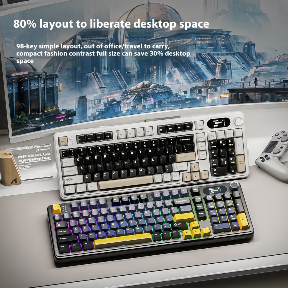 Clavier mécanique de jeu sans fil RGB à trois modes avec écran gravé sur le côté personnalisé Attack Shark X98Pro
