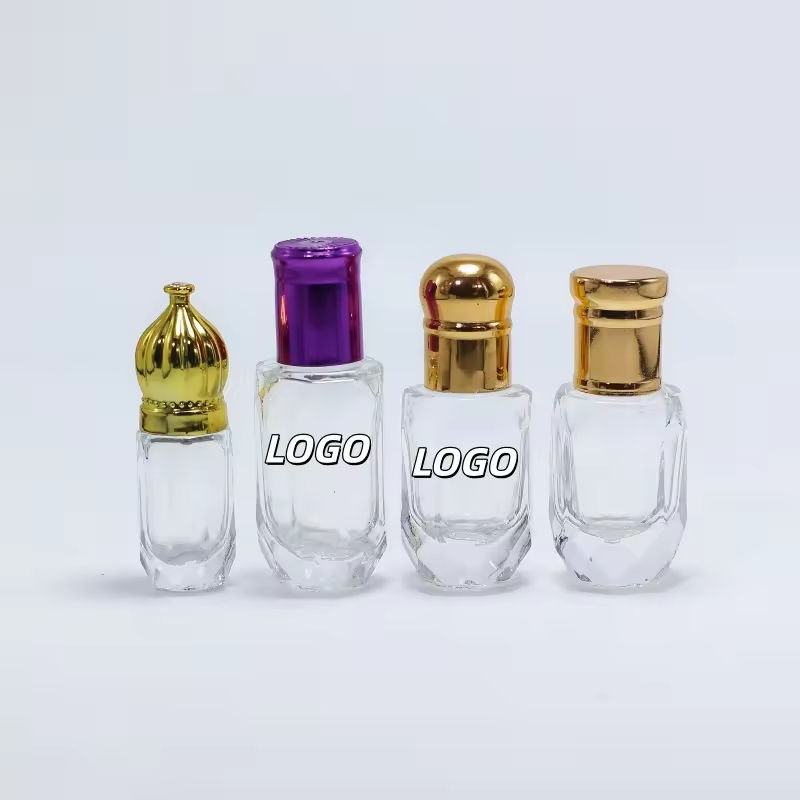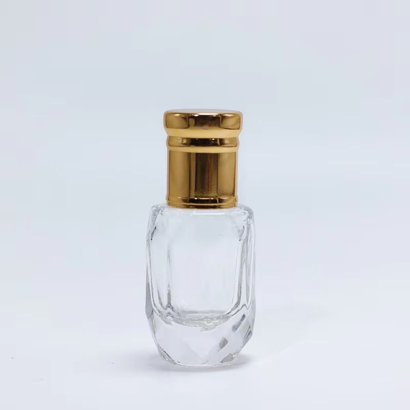Flacon de parfum Attar en verre de forme octogonale, flacon d'huile essentielle d'Oud Attar arabe avec applicateur à bille en verre