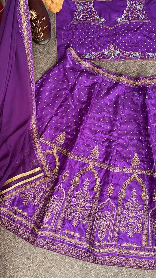 Attractive Bridal Purple Colour Malay Satin Fabric Embroidered Party Choli Women Lehenga Choli India & Pakistan