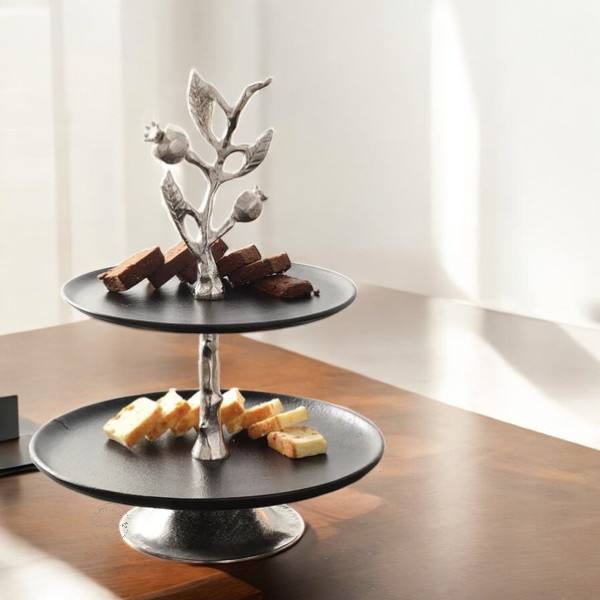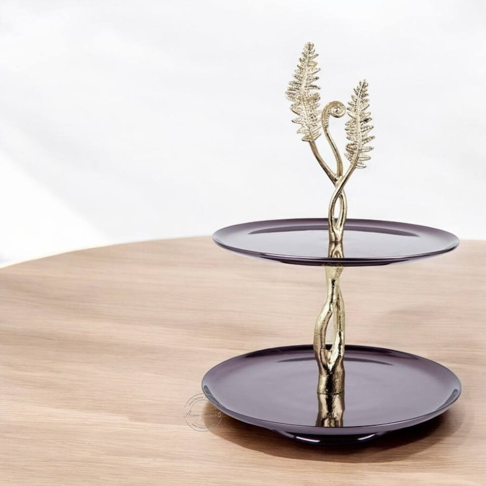 Support à gâteau en aluminium à 2 niveaux au design attrayant avec fini miroir utilisé pour la décoration de table de mariage et d'hôtel de luxe
