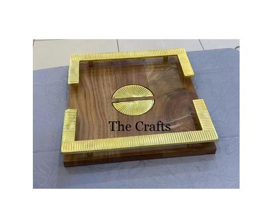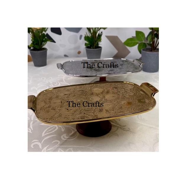 Plateau de service en aluminium au design attrayant avec base en bois Vaisselle Plateau de nourriture décoratif à des prix abordables