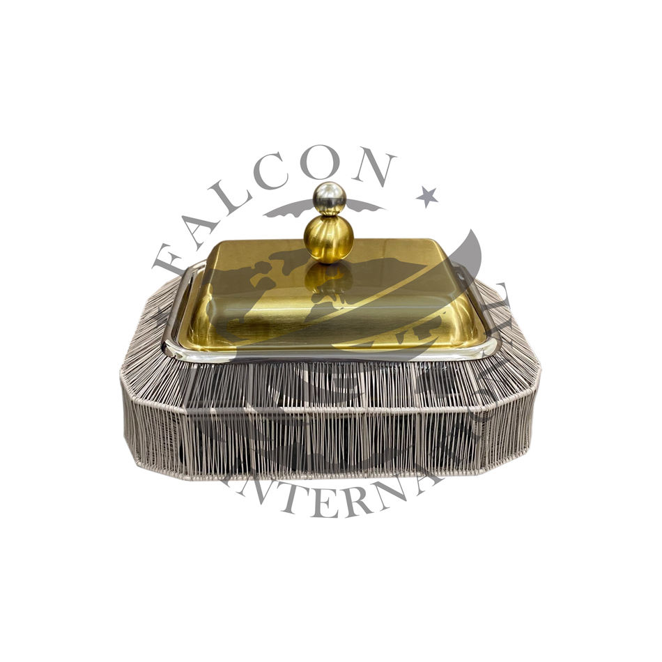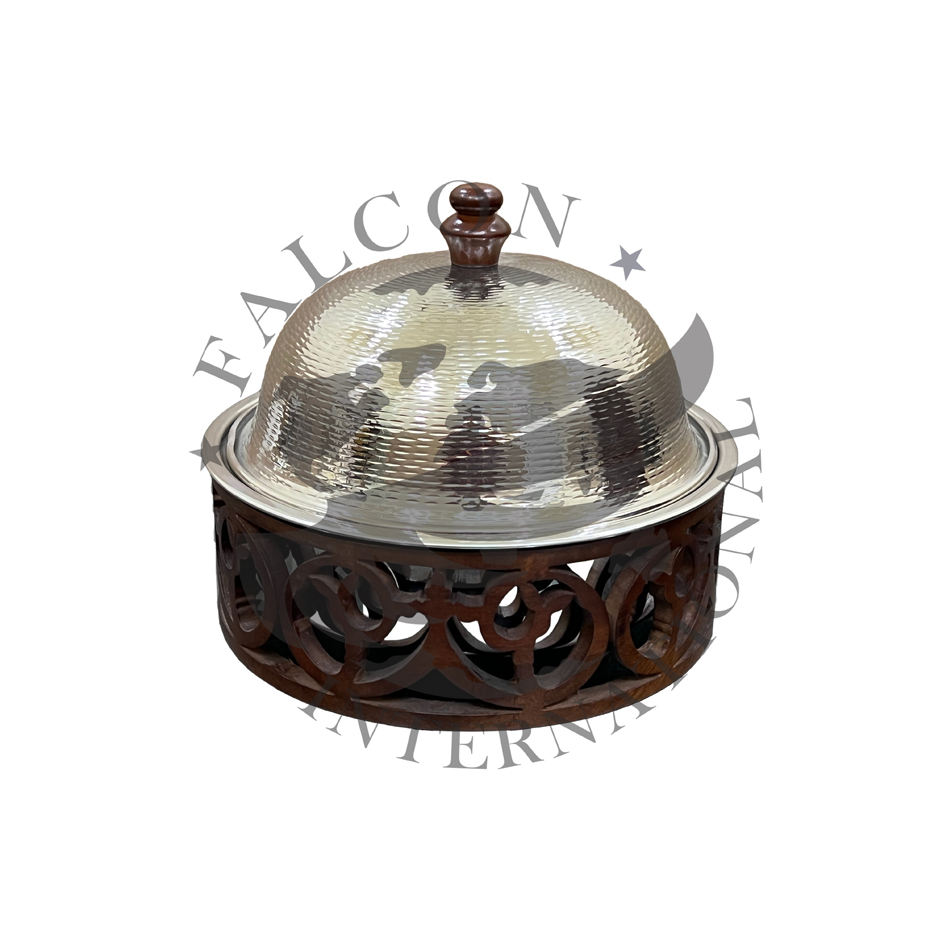 Réchauffeur de nourriture en acier inoxydable au design de feuille avec couvercle en or Casserole faite à la main de qualité supérieure Dernière collection Nouvelle marmite en métal