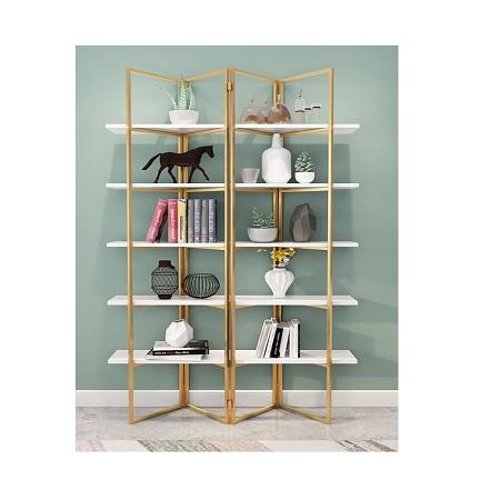 Étagère en verre et en métal au design attrayant, étagère de rangement à 6 niveaux avec cadre doré de grande taille pour la décoration intérieure