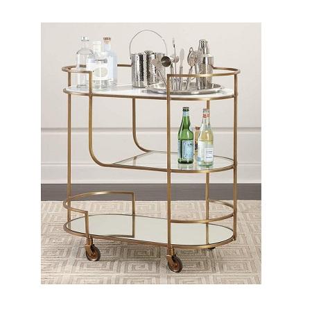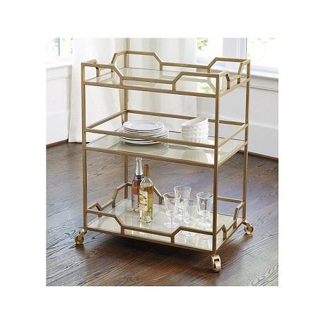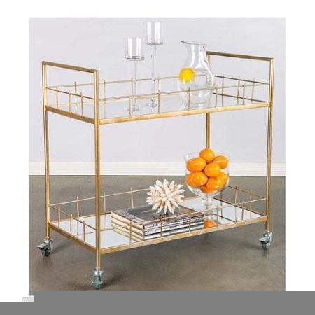 Chariot de service rond de style antique pour le thé et les aliments, en métal et en verre, taille personnalisée, chariot de rangement en vrac