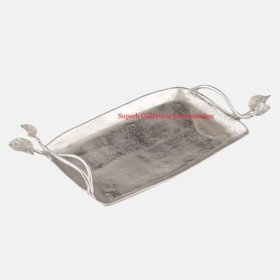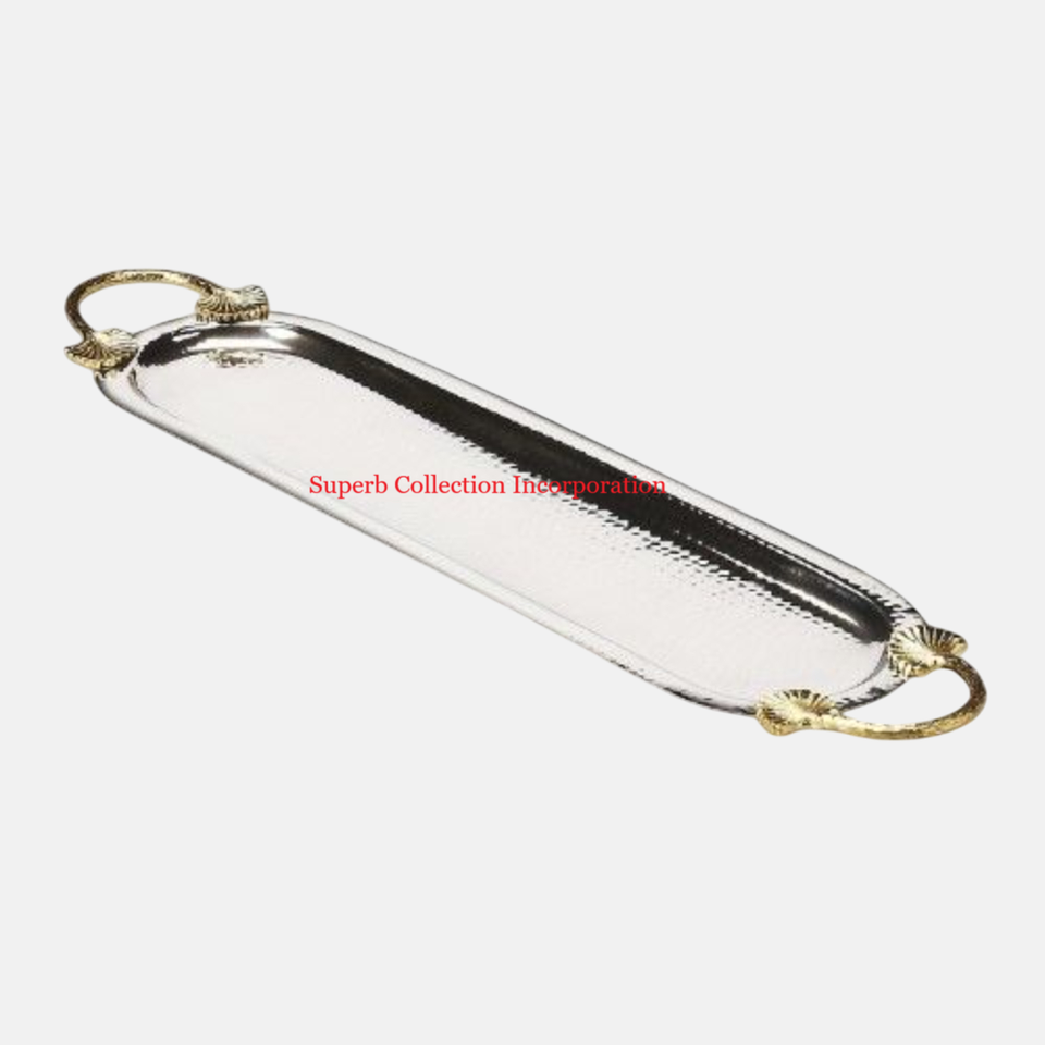 Service au design attrayant avec poignée en or Table pour aliments et boissons Plateau de service pour collations décoratives Serveur en métal argenté de haute qualité
