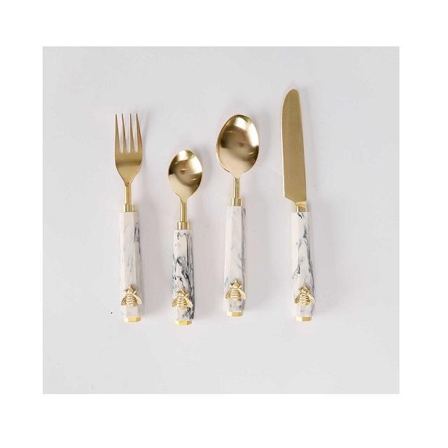 Design attrayant Ensemble de 4 couverts en laiton couleur or Ensemble de couverts pour restaurant, maison et hôtel