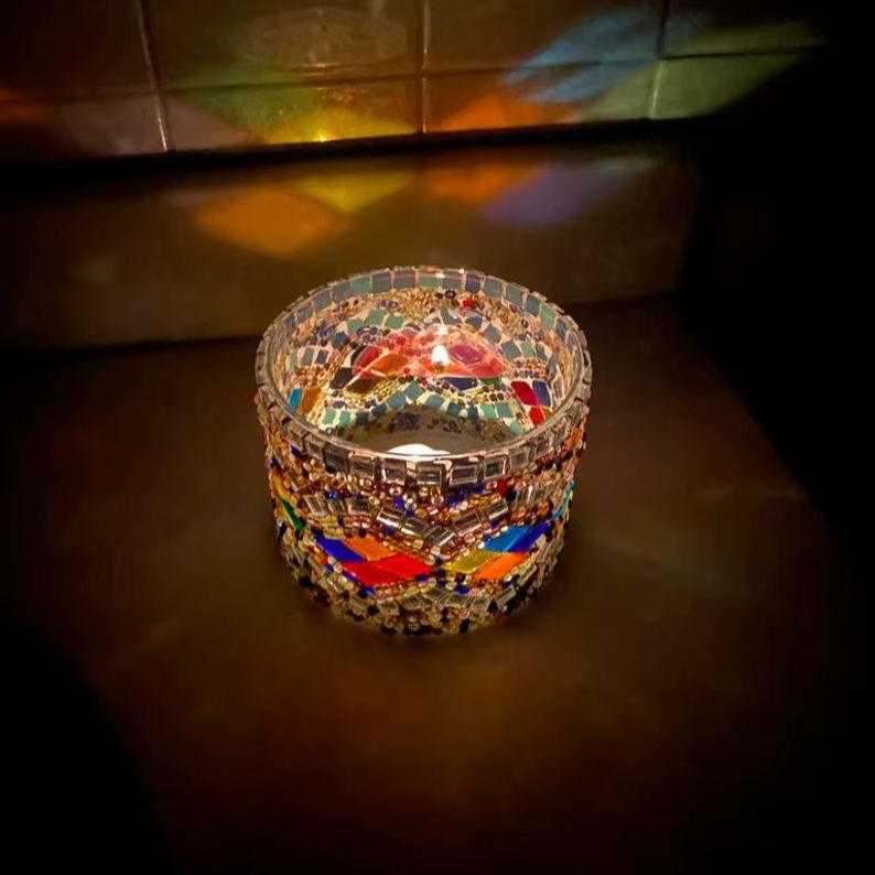 Attractive Designer Hand Carved Mosaic Finished Votive Candle Holder Tabletop Decorative Wedding Decor Metal Candle Holders