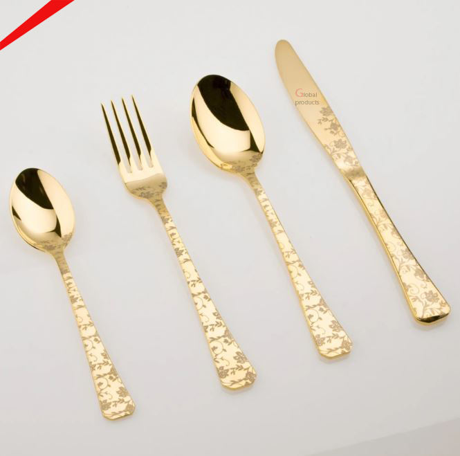 Couverts en acier inoxydable en métal fini doré d'aspect attrayant pour restaurant et bar d'hôtel