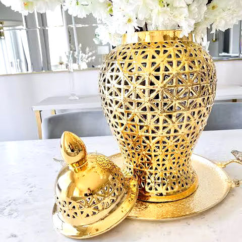 Conception attrayante fer Art déco fait à la main Antique fleur Vase or fini trophée forme ensemble de différentes tailles Pots de jardin