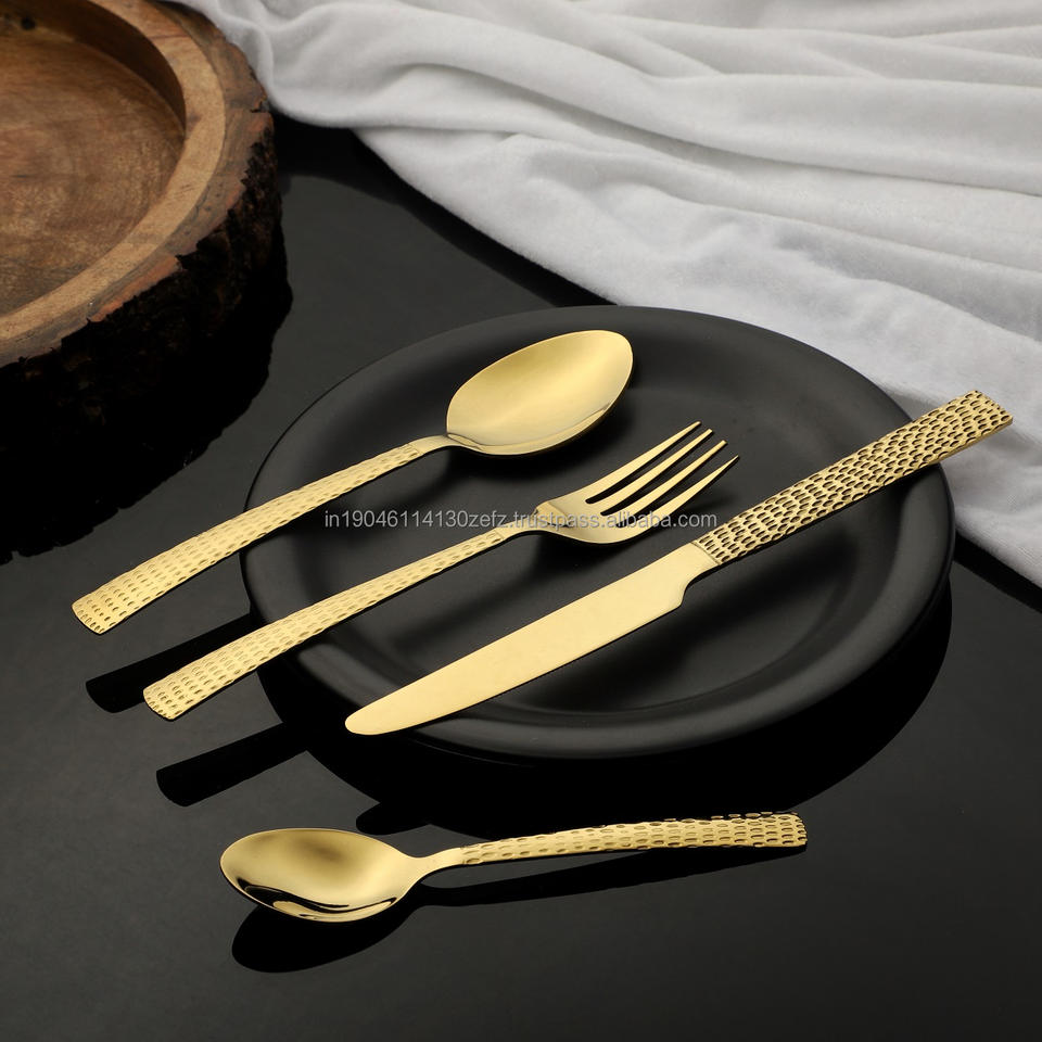 Ensemble de couverts en acier inoxydable doré 202/304 attrayant cuillère brillante fourchette couteau bébé cuillère pour les fêtes couverts martelés