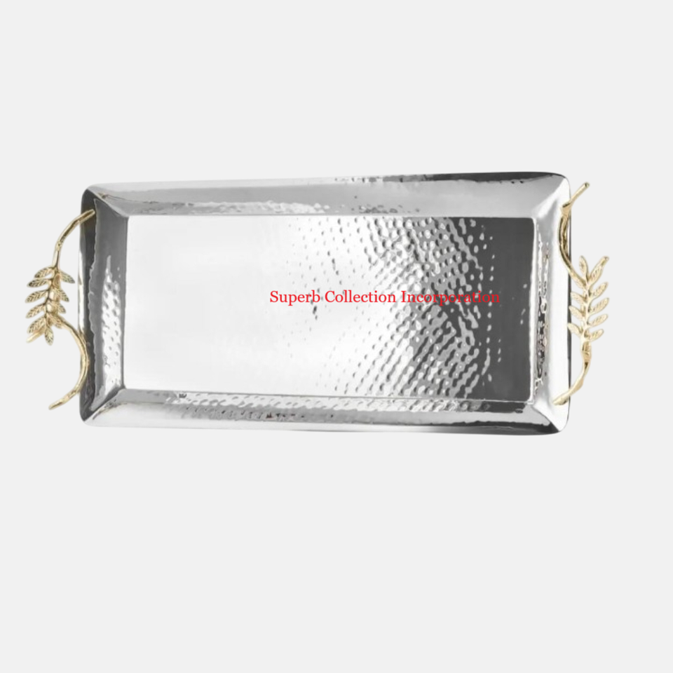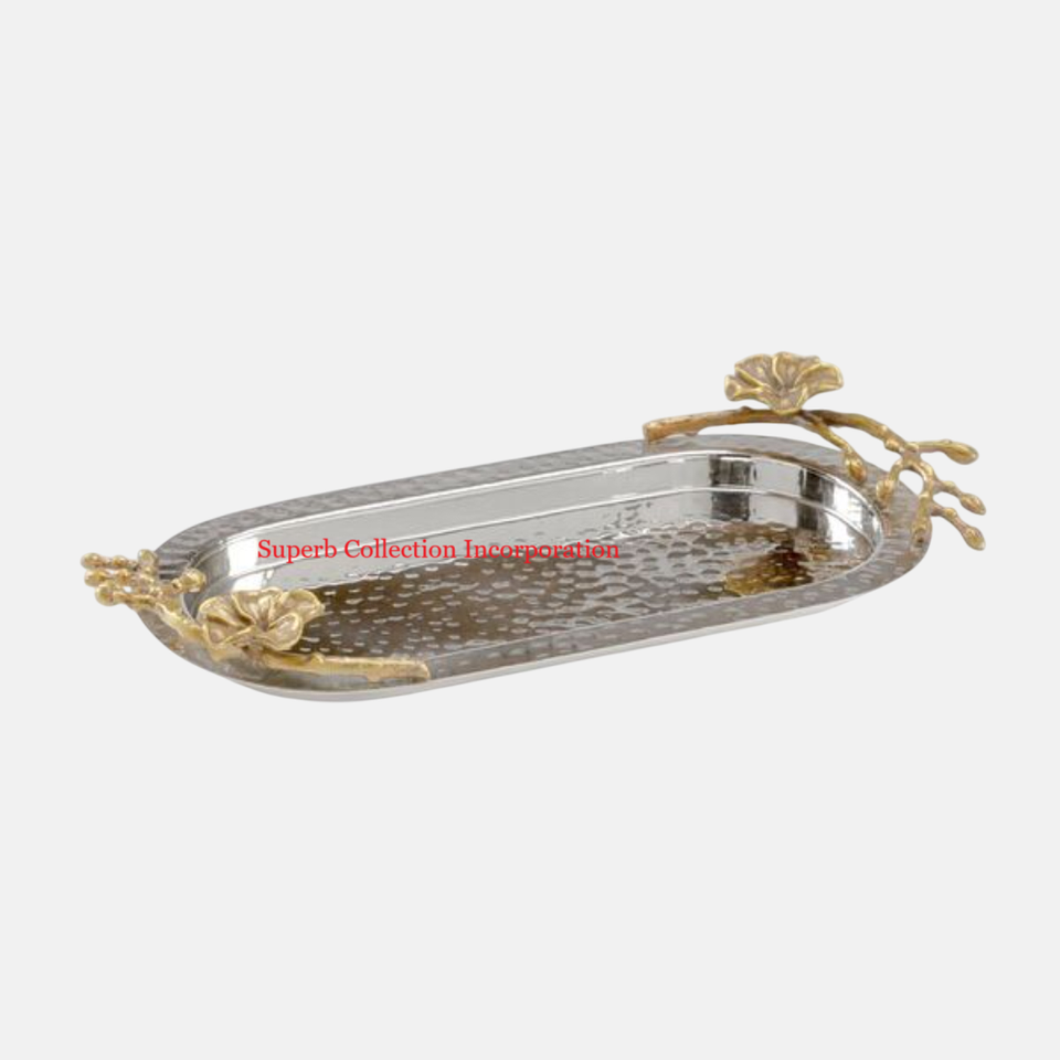 Conception martelée attrayante avec plateau de service de collations d'accent en métal de feuille d'or pour l'hôtel et les fêtes vaisselle bonbons plateau de service