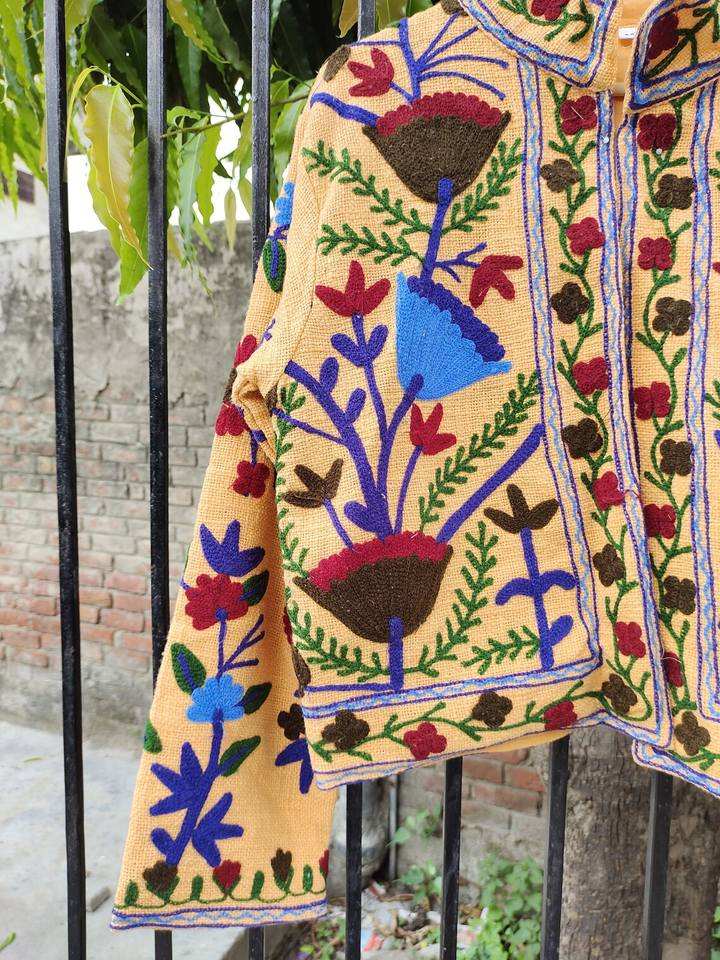 Veste longue Suzani brodée à la main attrayante pour femmes, printemps, bohème, boho, gypsy, jaune, veste, manteau pour femmes