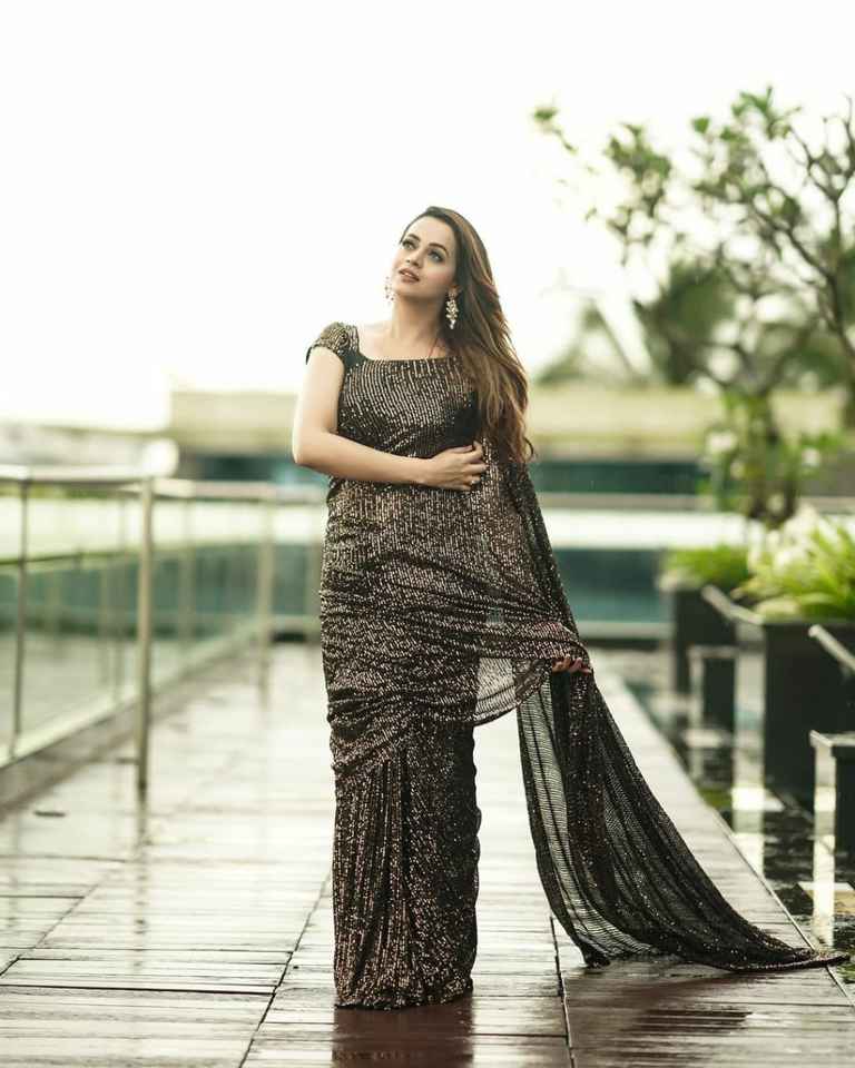 Type de produit:Georgette Séquence Noir Couleur Saree