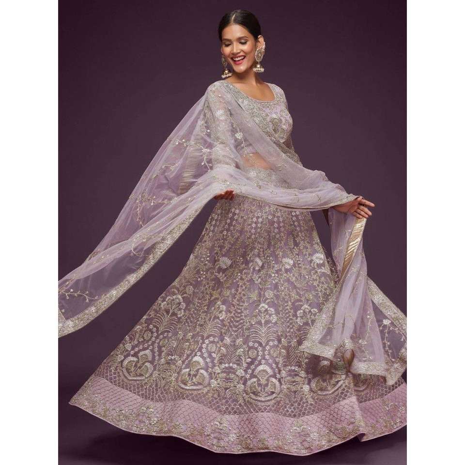 Attrayant Lilas Brodé Doux Net Wedding Wear Lehenga Choli