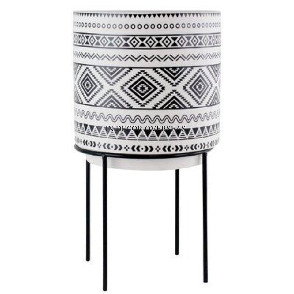 Le métal résistant enduit de poudre de couleur noire de concepteur de regard attrayant a fait des planteurs de forme ronde avec des supports uniques plaqués par or