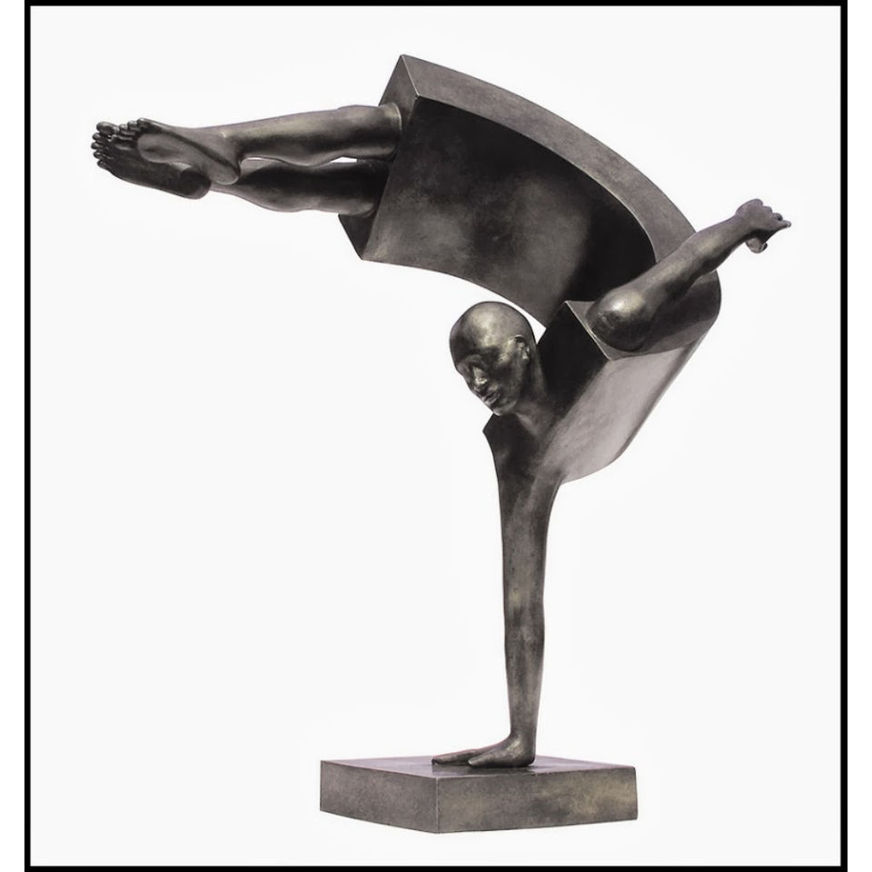 Sculpture attrayante en métal noir Design unique Sculpture de table enduite de poudre pour les fournitures d'organisation de bureau