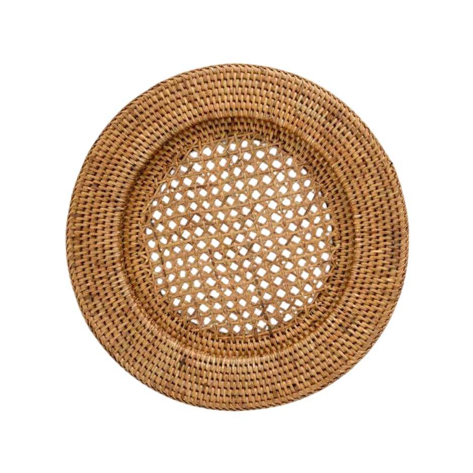 Assiette en rotin attrayante avec cadre brillant parfaite pour les maisons de luxe, restaurants, cafés, villas et cuisines modernes