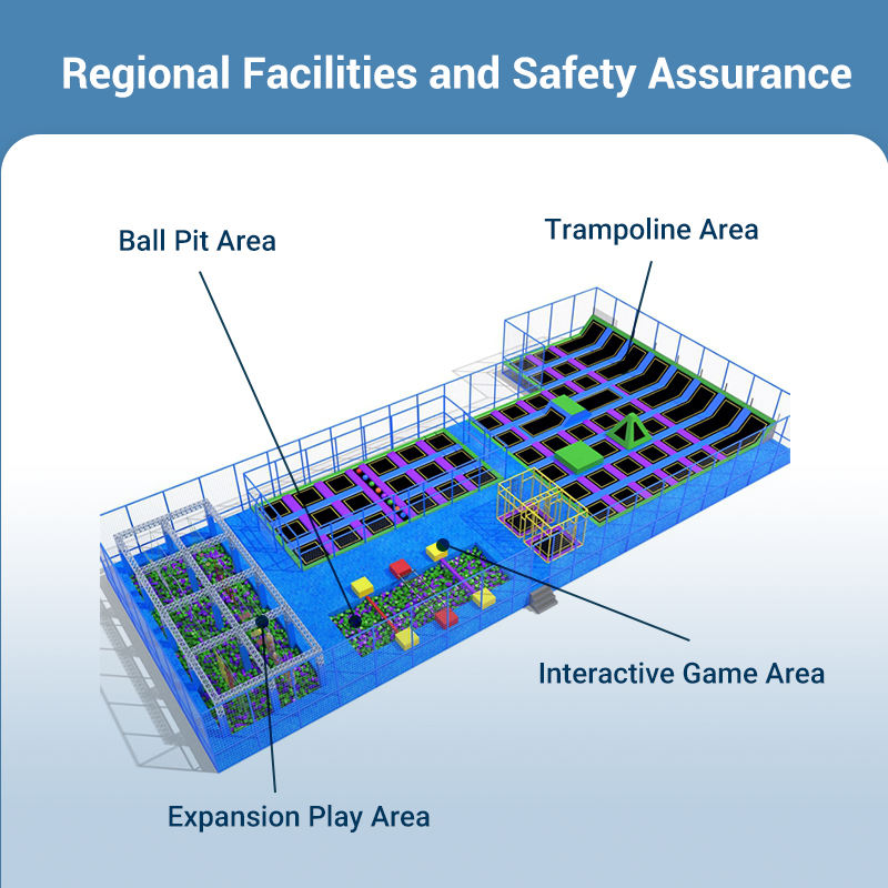 Parc de jeux intérieur pour enfants avec trampoline, design rectangulaire attrayant, grand trampoline avec zone de jeu extensible