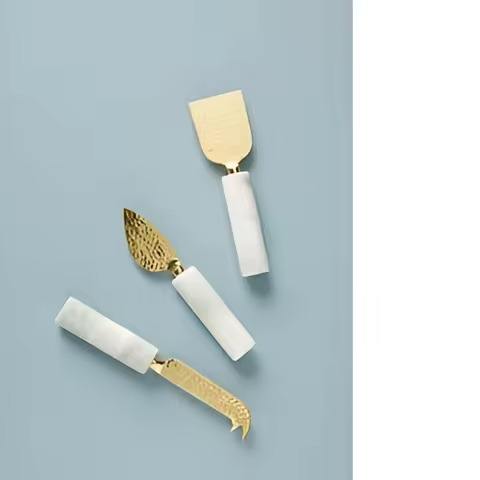 Ensemble de couteaux à fromage trancheuse en acier inoxydable 4pc de style attrayant avec manche en marbre pour servir le petit déjeuner au fromage