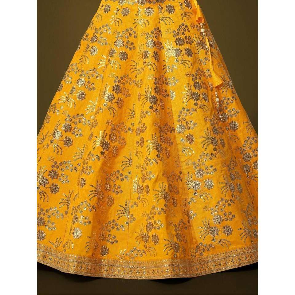 Attractive Yellow Slub Silk Wedding Wear Lehenga Choli with Sequins Elegant and Eye-catching for Brides