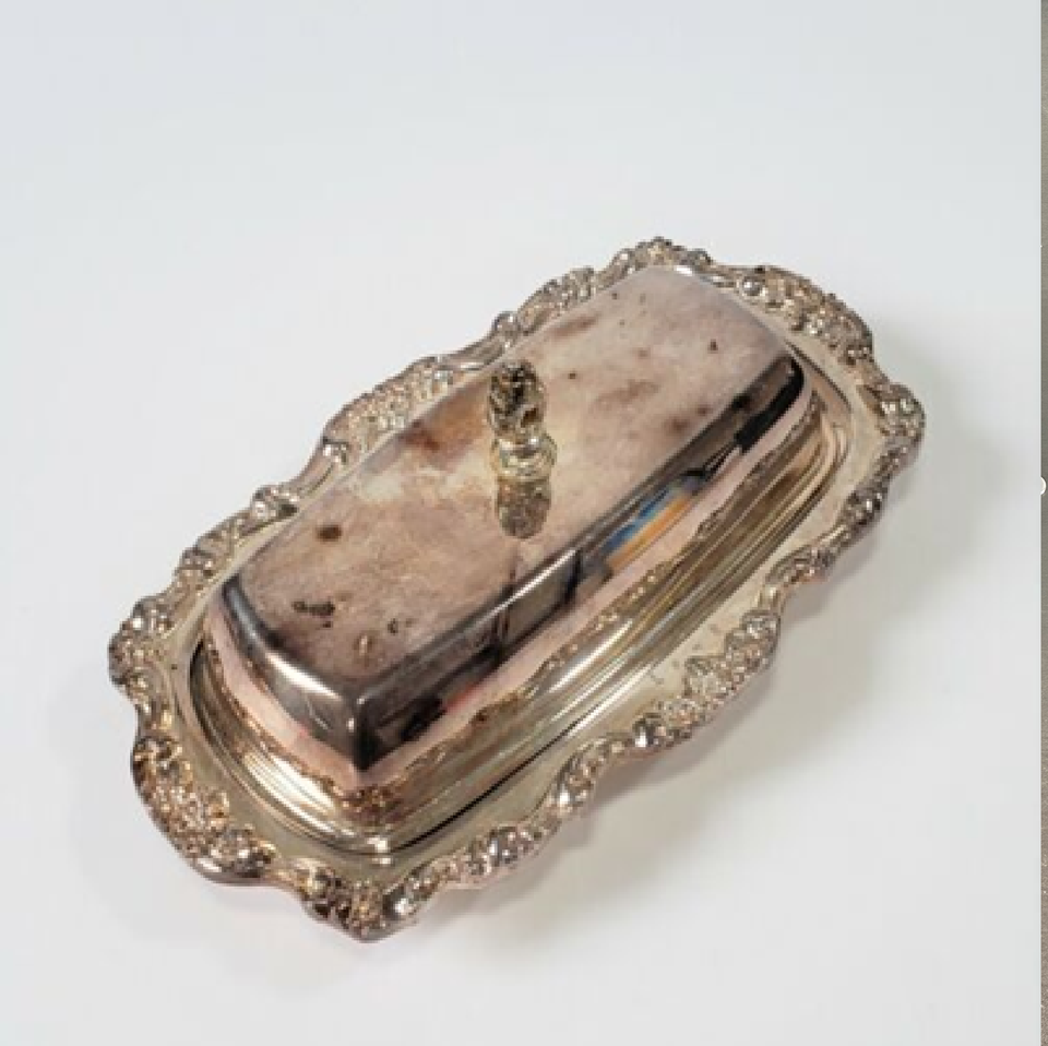 Attractive white ceramic butter dish with a delicate blue pattern, enhancing your kitchen decor. Available at wholesale prices.