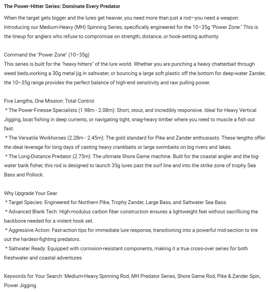 Cannes Spinning, Canne d'appât, Tige de Bateau/Radeau, Canne à appâts, Tiges d'eau salée, Tige d'eau douce, Tige de coulée de spin, Corde de lancement à distance, Tige flux, Jigging tigesCatégorie