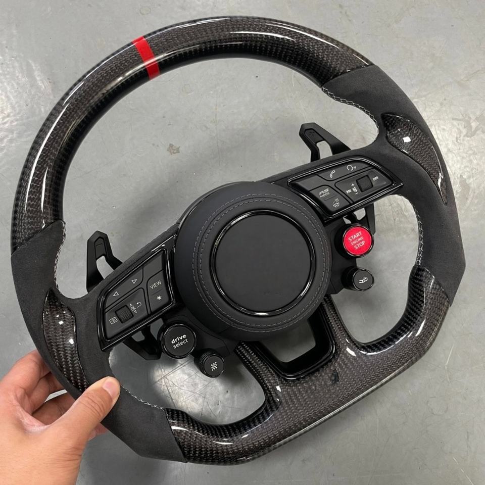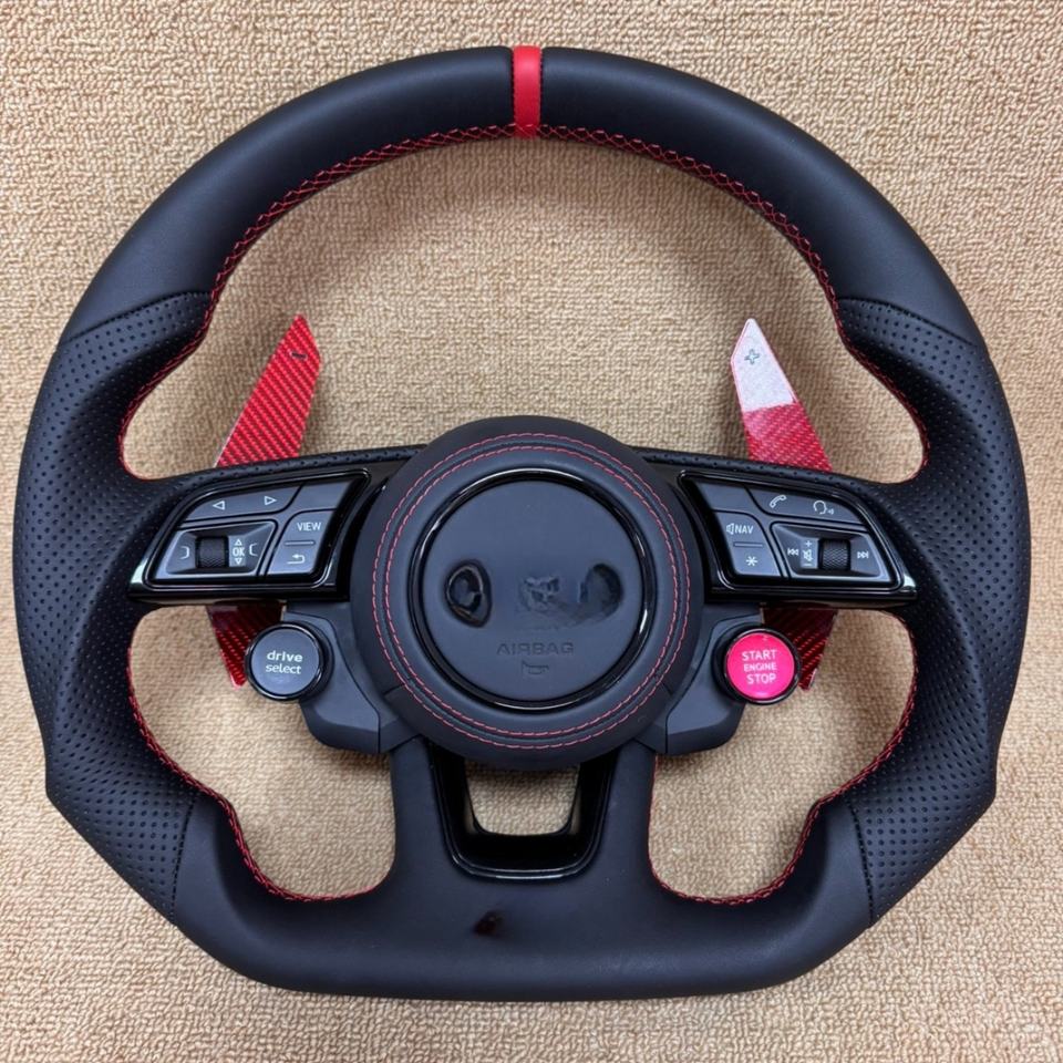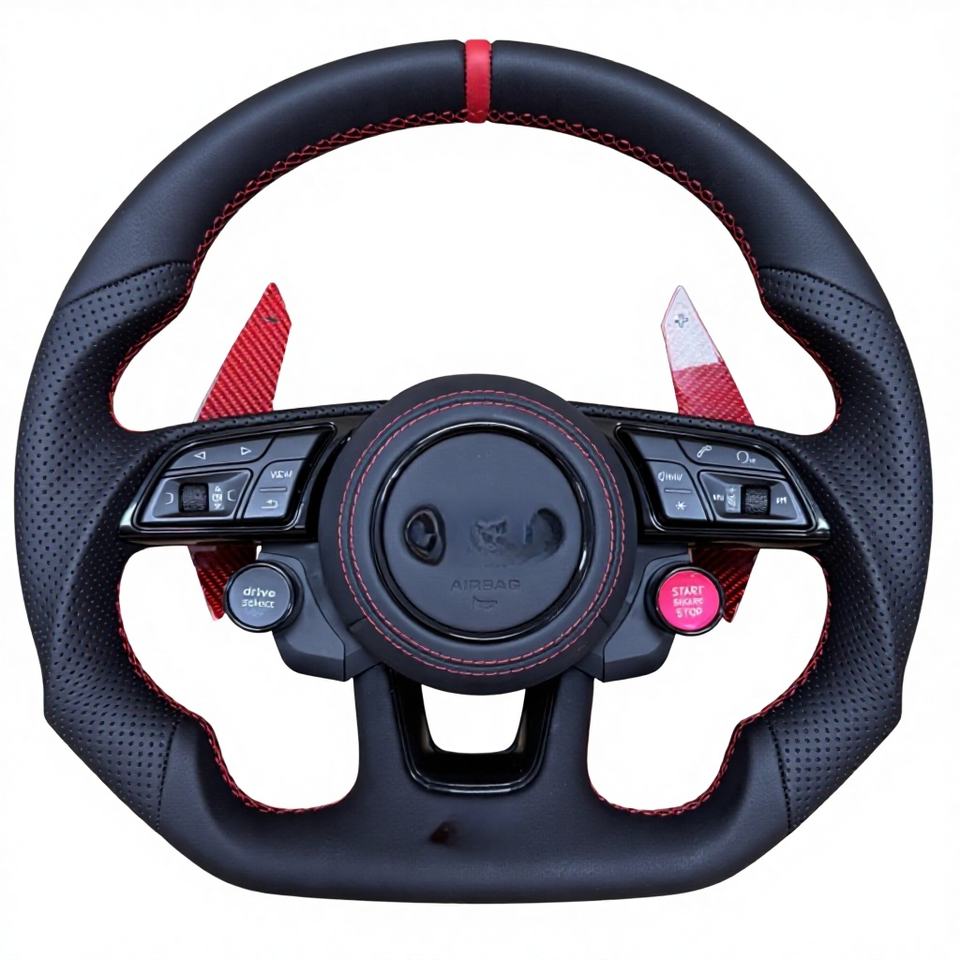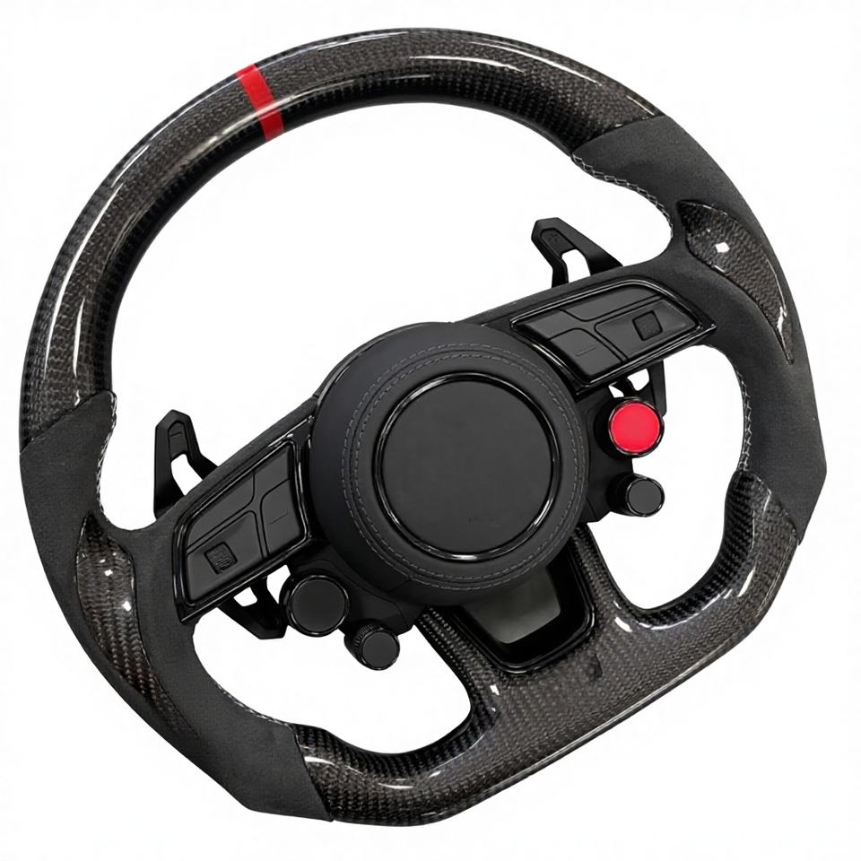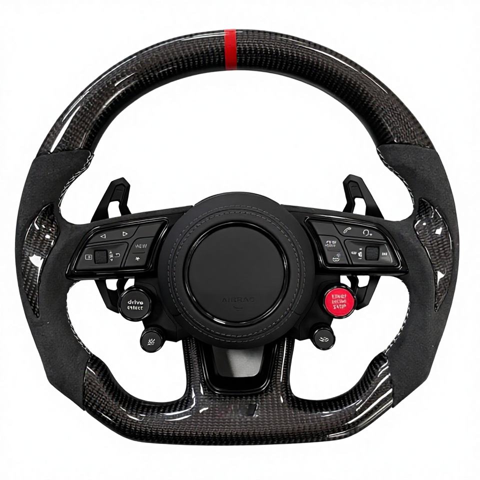 Volant sport en cuir et fibre de carbone Audi A4 A6 R8 TT Mk2 RS TTS RS3-7 Q3-Q7 40/45mm Grip