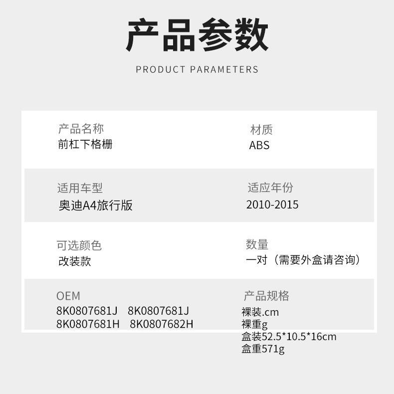 Paire de grilles inférieures avant noires en ABS pour Audi A4 Avant 2010-2015 – Pièce de rechange pour mise à niveau
