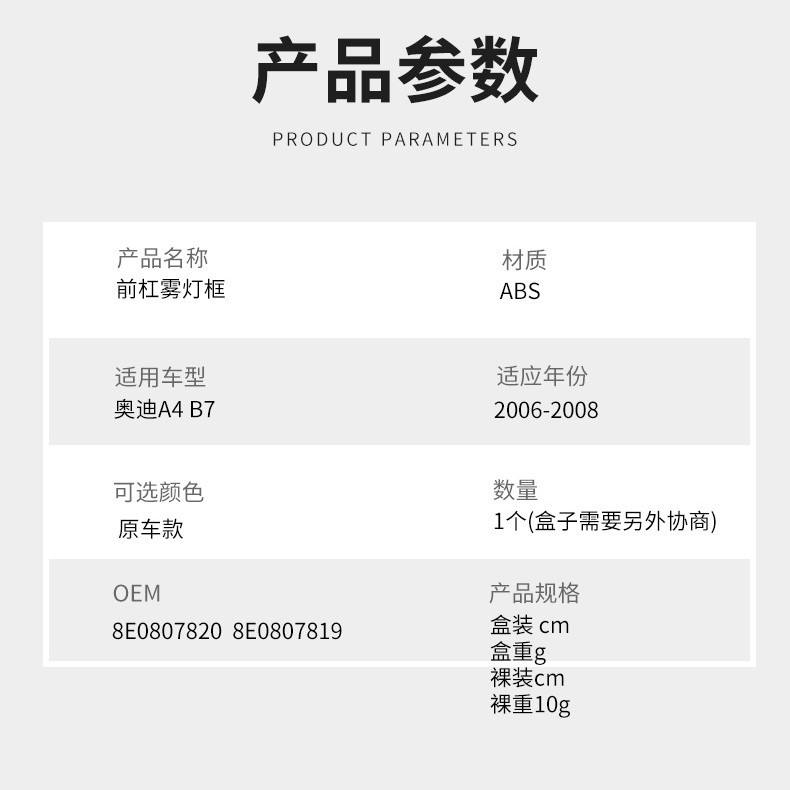 Grilles de feux antibrouillard avant Audi A4 B7 en plastique ABS 2006-2008 Pièce de rechange CK004